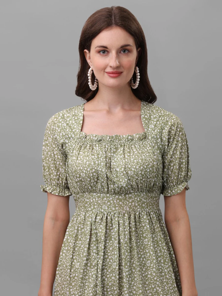 DRESSES FOR WOMEN WESTERN WEAR FLORAL GREEN